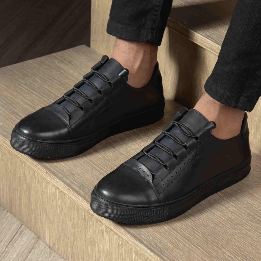 كاجوال جلد طبيعي برباط - اسود