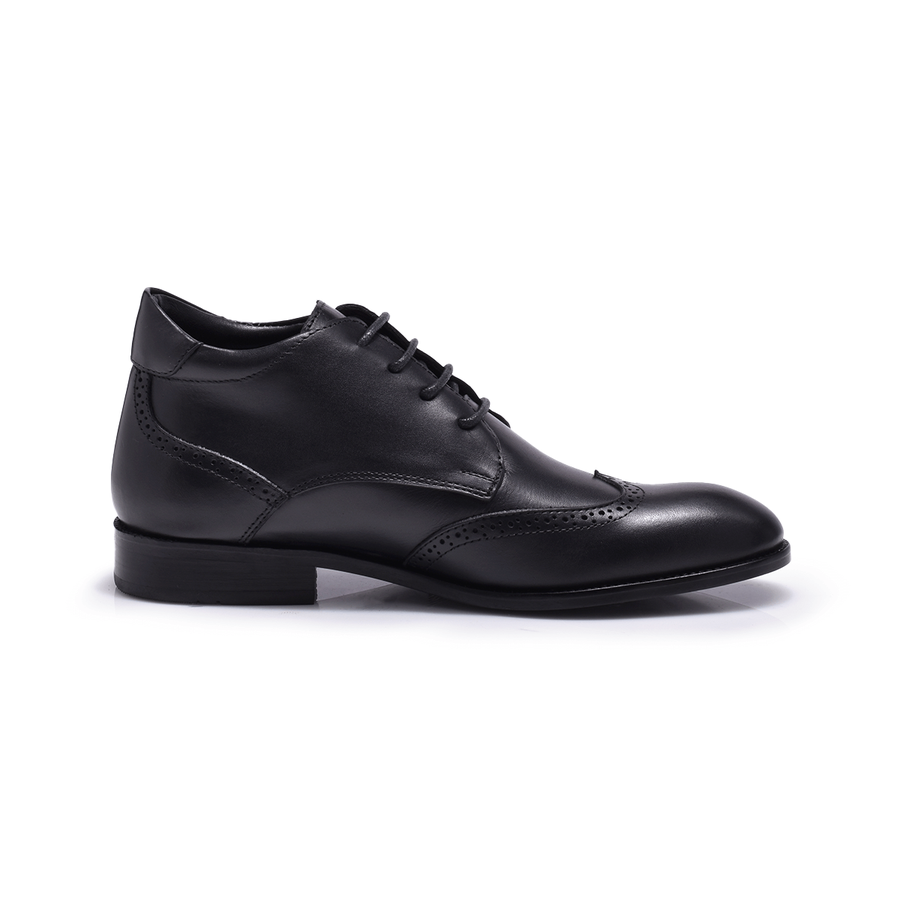 ارتقِ بأناقتك مع هذا الحذاء الكلاسيكي الرجالي المصنوع من الجلد الطبيعي عالي الجودة باللون الاسود. يتميز هذا الحذاء بتصميم Brogue Ankle Boot الذي يجمع بين متانة البوت والشكل الكلاسيكي، مع تفاصيل البروغ الزخرفية التي تمنحه لمسة عصرية وفخامة لا تضاهى في كل مناسبة.
