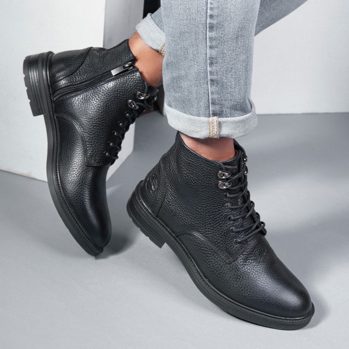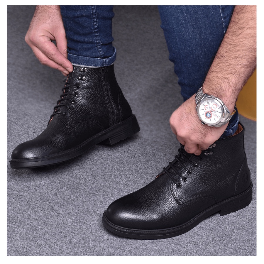 استمتع بالأناقة والتميز مع هذا الهاف بوت الرجالي المصنوع من الجلد الطبيعي عالي الجودة. يتميز هذا الهاف بوت بتصميم مميز وعصري يجمع بين الأناقة والراحة. صُمم هذا الحذاء ليكون مثاليًا لجميع المناسبات، سواء كانت للاستخدام اليومي أو للمناسبات الرسمية. تمتاز ببطانة داخلية ناعمة للغاية ونعل داخلي مبطن لراحة قدميك طوال اليوم. كما يتميز بنعل خفيف الوزن يوفر راحة استثنائية.