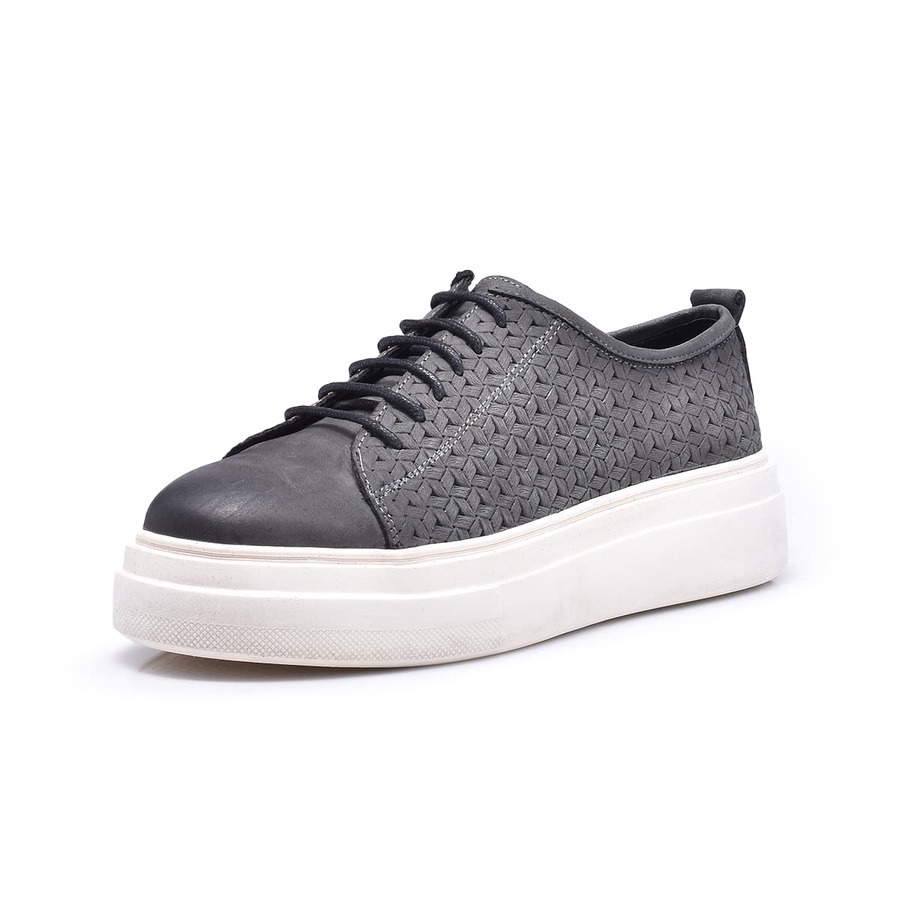 كاجوال جلد طبيعي برباط - رمادي