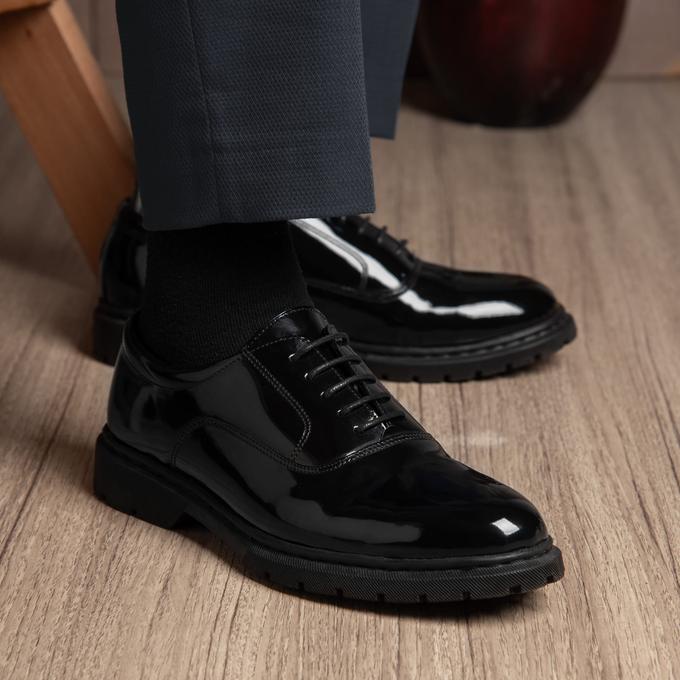تمتع بالأناقة الكلاسيكية مع حذاء الرجال هذا، المصمم بأناقة مع الحفاظ على الراحة. يتميز الحذاء بجزء علوي لامع يمنحه مظهرًا أنيقًا وجذابًا، مع رباط لتوفير ملاءمة مثالية. تحتوي البطانة الداخلية والجزء العلوي على جلد طبيعي لتوفير الراحة والتهوية، في حين يتميز النعل بتصميم رابر يضمن ثباتًا متينًا على مختلف الأسطح.